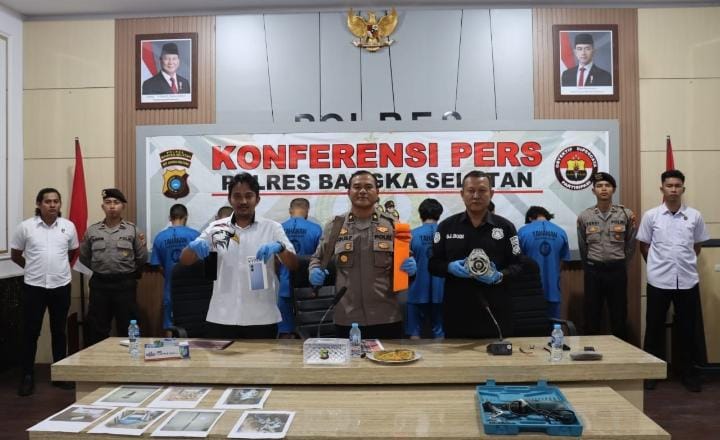 TOBOALI, BABELINES.com – Polres Bangka Selatan (Basel) menggelar konferensi pers terkait hasil pelaksanaan Operasi Tertib Menumbing 2025 yang berlangsung selama 12 hari kerja, di Aula SS Polres Bangka Selatan, Selasa (21/10/2025).