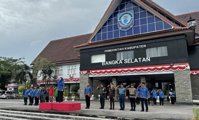 TOBOALI, BABELINES.COM – Pemerintah Kabupaten (Pemkab) Bangka Selatan (Basel) bersama dengan Komite Nasional Pemuda Indonesia (KNPI) Bangka Selatan menggelar Upacara Peringatan Hari Sumpah Pemuda ke-97 Tahun 2025 di halaman Kantor Bupati Bangka Selatan, Selasa (28/10/2025).