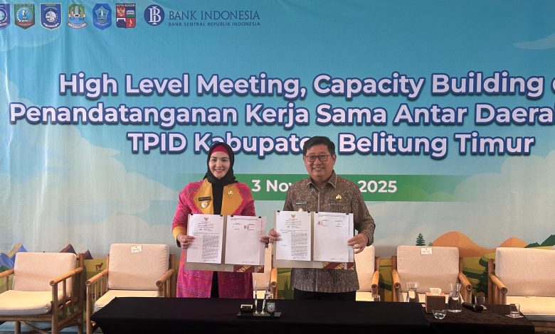BELITUNG TIMUR, BABELINES.COM – Wakil Bupati Bangka Selatan (Basel) Debby Vita Dewi menghadiri High Level Meeting (HLM), Capacity Building, dan Penandatanganan Kerja Sama Antar Daerah (KAD) Tim Pengendalian Inflasi Daerah (TPID) Kabupaten Belitung Timur, di Hotel Sheraton Resort Belitung, Senin (3/11/2025).
