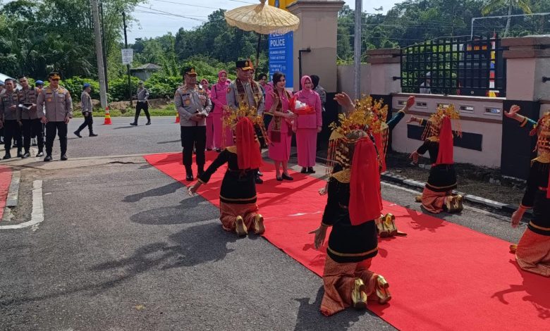 Penyambutan Jenderal bintang dua ini berlangsung meriah di halaman Mapolres Basel. Tampak juga sejumlah personel menampilkan tarian adat sekapur sirih sebagai bentuk penghormatan kepada tamu kehormatan, dengan bentangan karpet merah digelar di pintu masuk markas kepolisian sebagai simbol penyambutan tamu resmi.