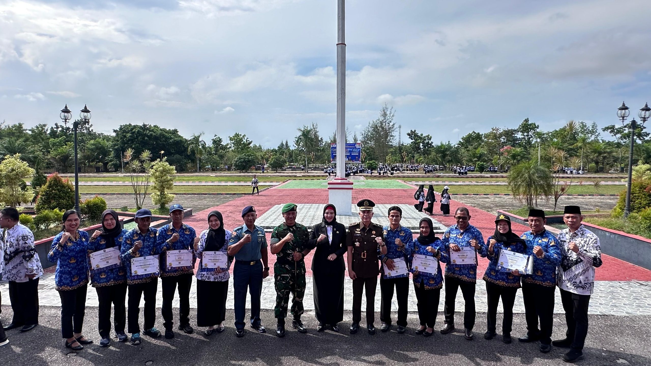 Dalam momentum trrsebut juga turut dihadiri jajaran Forkopimda, kepala OPD, guru, hingga pegawai di lingkungan Pemkab Basel.