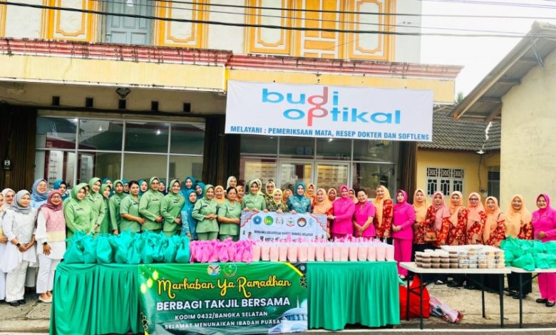 BANGKASELATAN, BABELINES.COM – Semangat berbagi di bulan suci Ramadan ditunjukkan oleh jajaran organisasi wanita di Kabupaten Bangka Selatan (Basel) melalui kegiatan pembagian takjil kepada masyarakat di Simpang Nanas Toboali, Rabu (4/3/2026) sore.