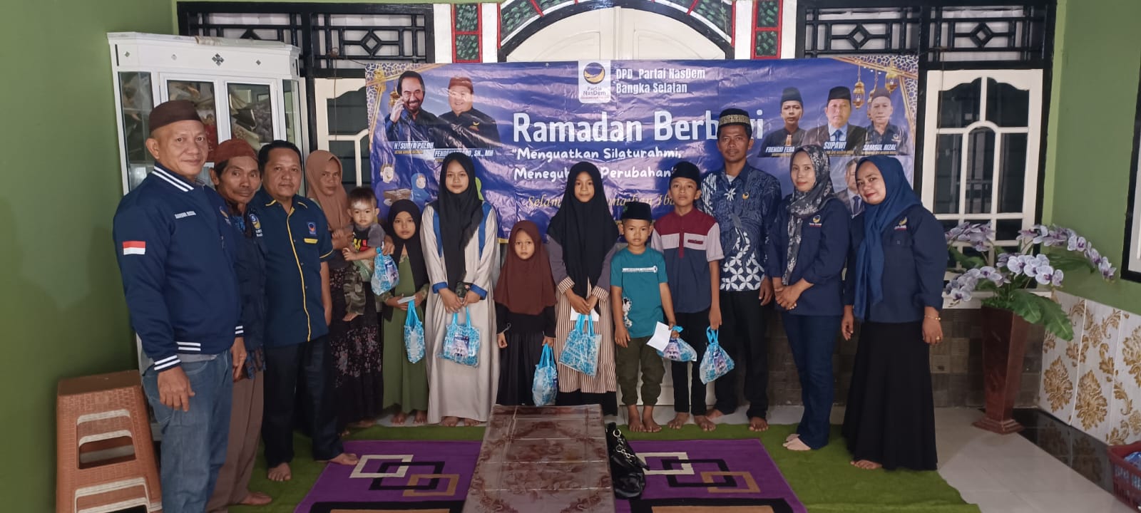 Kegiatan yang dilaksanakan di Desa Sidoharjo, Kecamatan Airgegas tersebut secara dipimpin langsung Ketua DPD Partai NasDem Bangka Selatan, Supawi, dan turut dihadiri Sekretaris Jenderal (Sekjen) DPD Partai NasDem Bangka Selatan Frengki Fera, S.E., Bendahara Samsul Rizal, serta para pengurus dan anggota Partai NasDem Bangka Selatan.