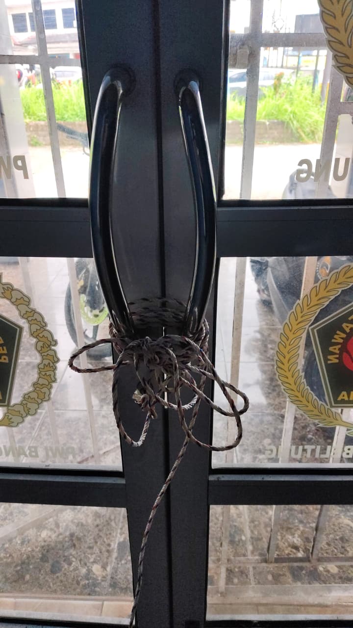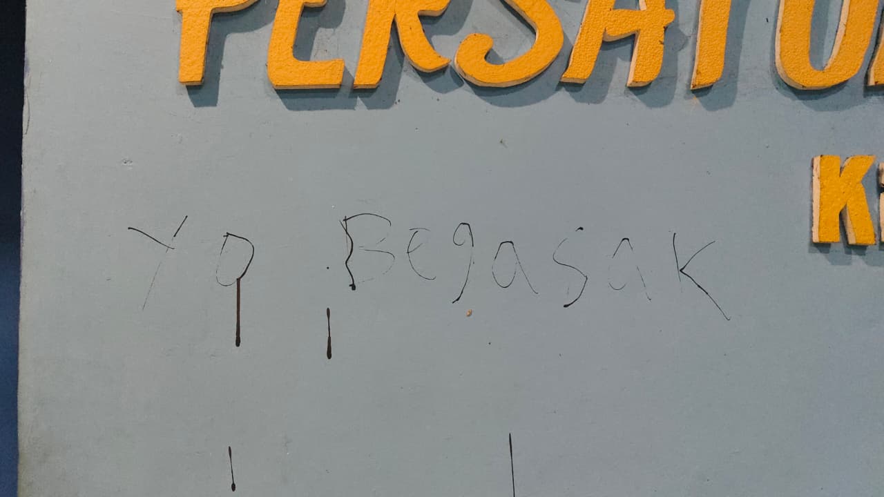 Tak hanya itu, terdapat juga coretan tulisan bernada ancaman di salah satu dinding kantor yang menambah dugaan adanya unsur teror.