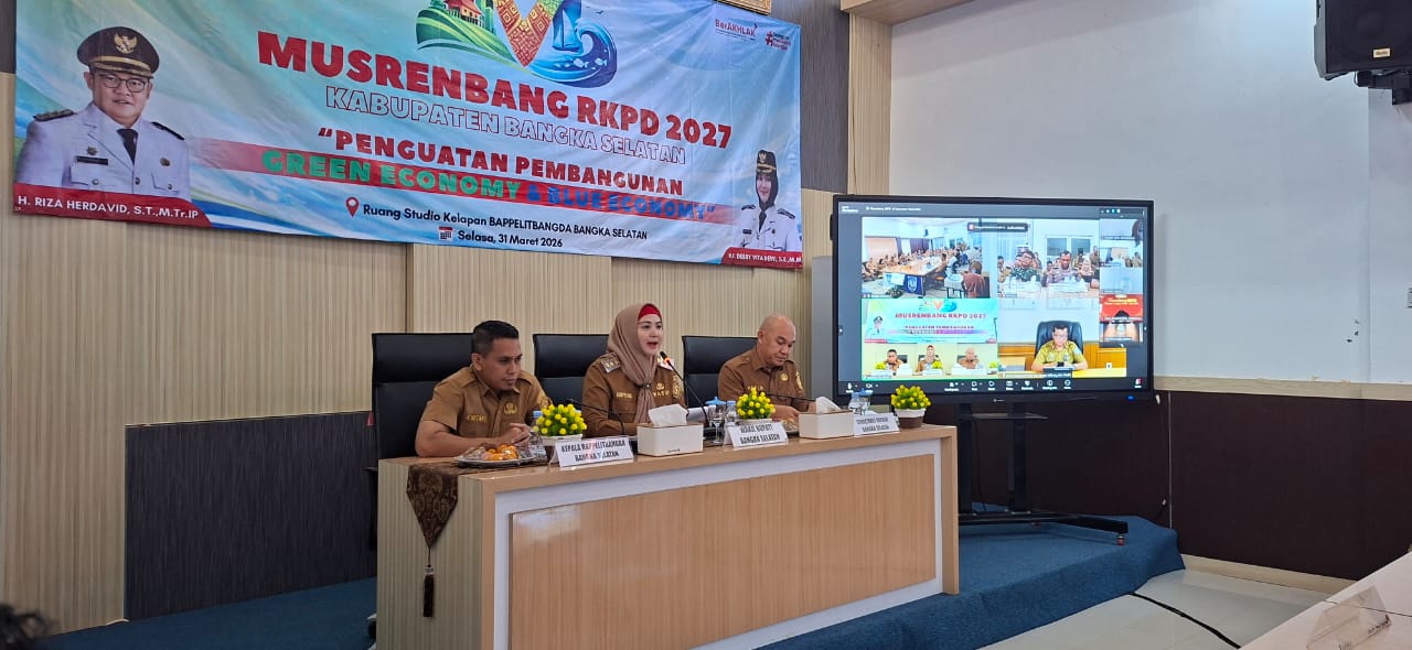 Kegiatan tersebut berlangsung pada Selasa,31 Maret 2026, bertempat di Ruang Studio Perencanaan Pulau Kelapan, Badan Perencanaan Pembangunan, Penelitian dan Pengembangan Daerah (Bappelitbangda) Bangka Selatan ini, dihadiri langsung Wakil Bupati Bangka Selatan Debby Vita Dewi.