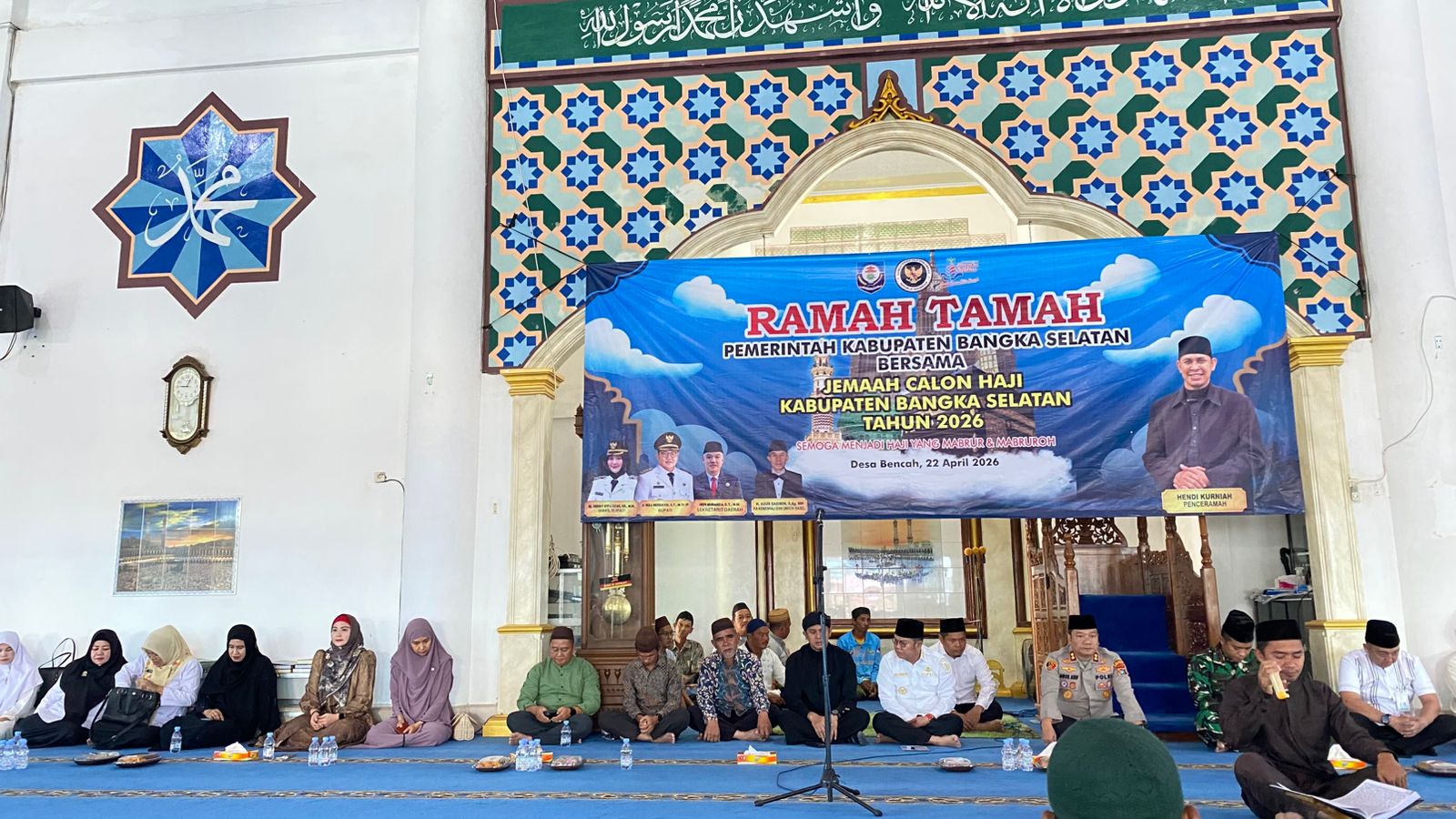 BANGKASELATAN, BABELINES.COM – Pemerintah Kabupaten (Pemkab) Bangka Selatan (Basel), menggelar kegiatan ramah tamah bersama jemaah calon haji daerah Kabupaten Bangka Selatan, di Masjid Jami’ Al Maghfiroh Desa Bencah, Kecamatan Airgegas, Rabu (22/4/2026).